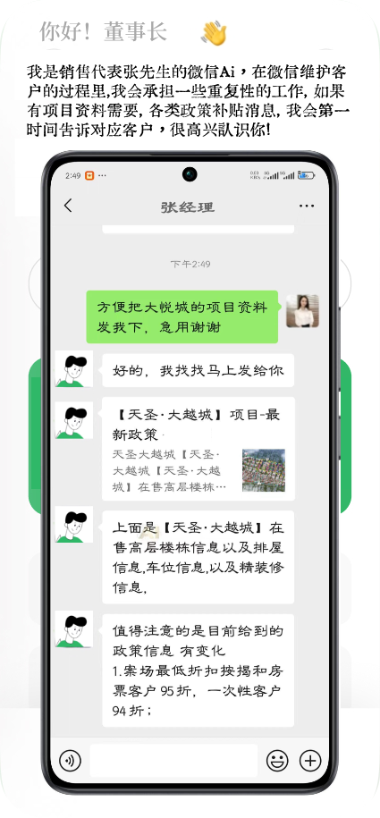 微信Ai数字人会根据Sop推行管理以及营销政策,无缝自动化协同真人推进政策营销